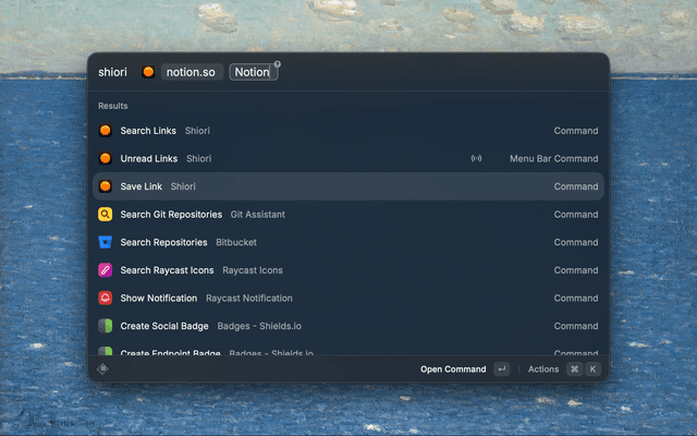 Search, save, and manage your Shiori bookmarks directly from Raycast.