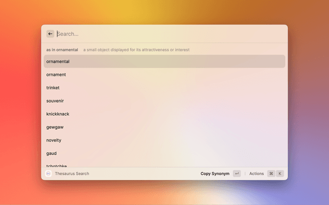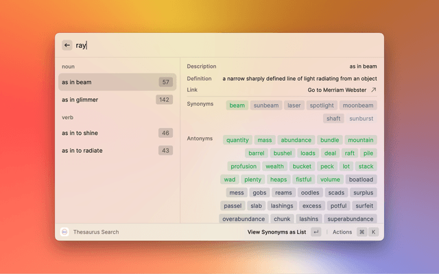 Look up any word on Merriam-Webster's Thesaurus from raycast.