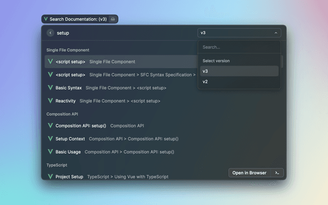 Just specify which VueJS version you are using for searching the corresponding documentation.
