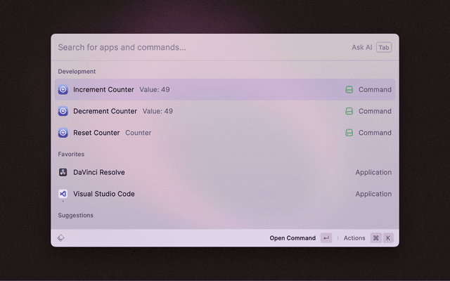 Start, stop, and save countdown timers, directly in Raycast, with no external dependencies.