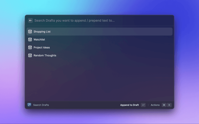 This extension integrates Raycast with Drafts.