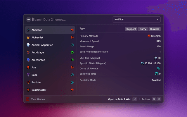 This extension allows you to view Dota 2 hero stats (and more in the future).