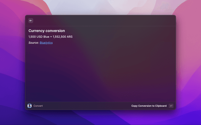 Raycast extension for doing quickly conversions between USD and ARS