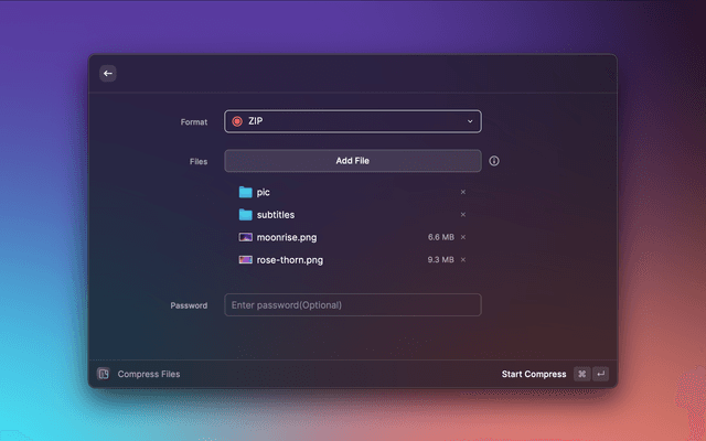An archive tool for compressing or extracting files, supporting multiple formats.