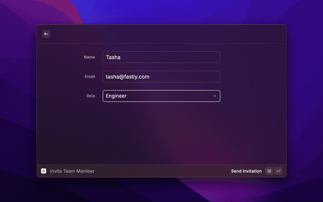 Need to quickly invite someone to your Fastly account? Use the Invite Team Member command to invite a colleague using name, email, and assigning a role.