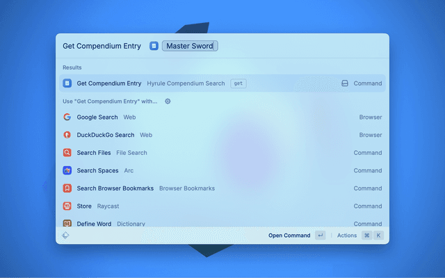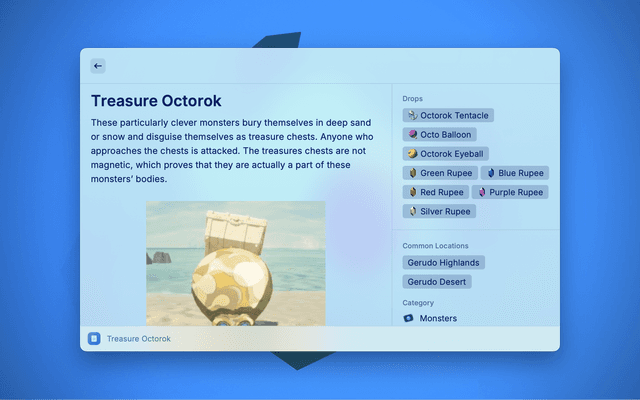 This extension allows you to conveniently search and access information from the BotW Hyrule Compendium.