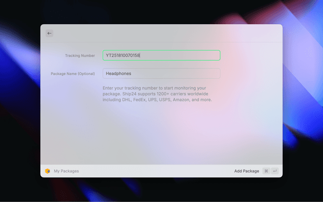 - Instant Package Addition - Add packages and immediately see tracking details