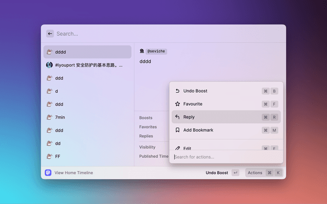 Publish status from Raycast to Mastodon, and view your bookmarked status