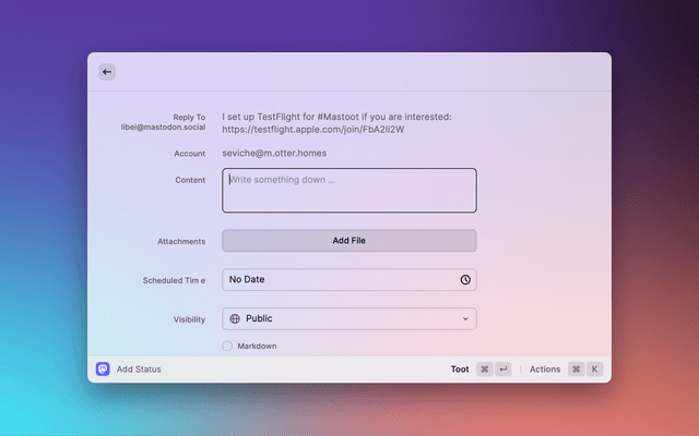 • Write status with markdown support.(Only if the instant supports Markdown)