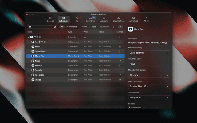 Search for "DTF" in Raycast Store and click Install.