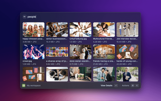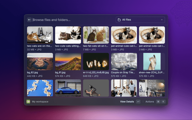 Search for files across your entire workspace or within specific workspaces.