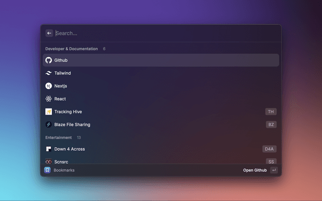 Integrate bookmarks from Brave, ChatGPT Atlas, Chrome, Dia, Edge, Firefox, Safari, Arc, Vivaldi, Vivaldi Snapshot, Zen, Whale, or Helium.