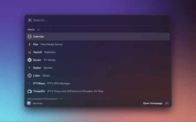 Show your Homepage services and bookmarks in Raycast.