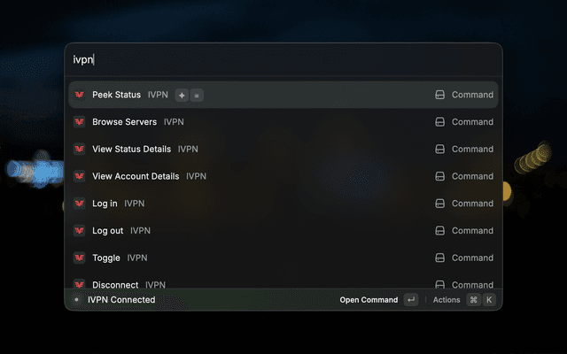 This extension allows you to quickly interact with your IVPN account, minimizing context-switching.