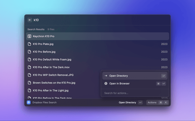 This is the unofficial Raycast Extension for Dropbox allowing you to List Files, Search Files, Download Files, and more.