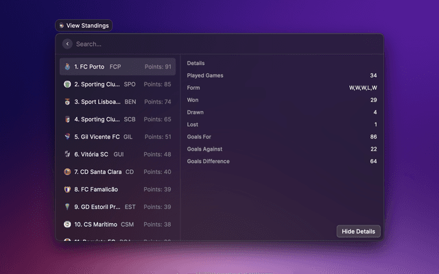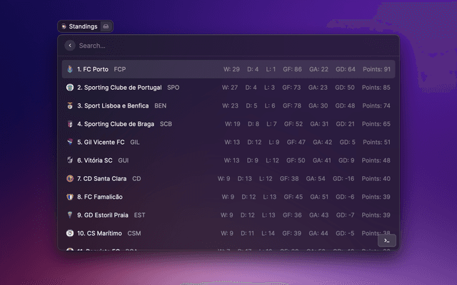 View the latest Portuguese Primeira Liga standings.