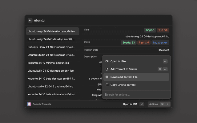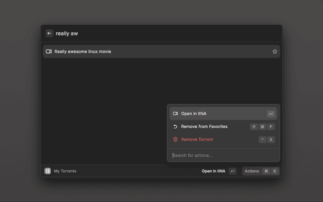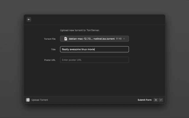 - Search Torrents Across Trackers: Add link to selfhosted Jackett parser to search for torrents across trackers and add them directly to your TorrServer from Raycast.