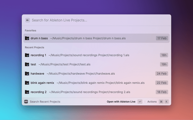 Search and open Ableton Live projects