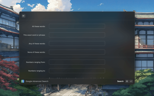 Enhance your desktop with this Raycast extension that simplifies Google's advanced search, bringing features like exact matches and domain filtration directly to macOS—ideal for quick, precise searches without needing to remember complex search options.