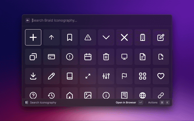 Search and use Braid Components and Iconography from Raycast