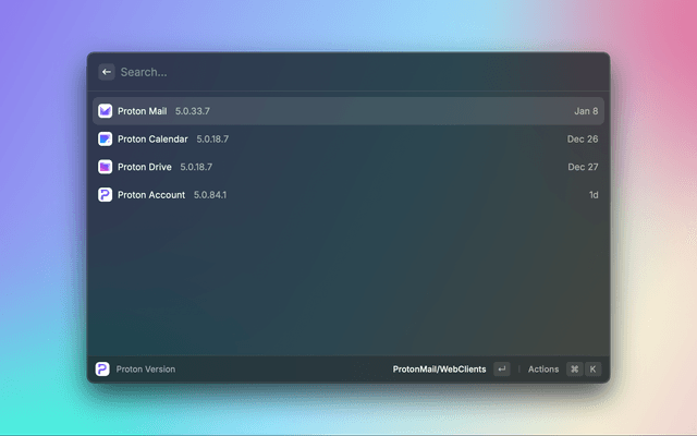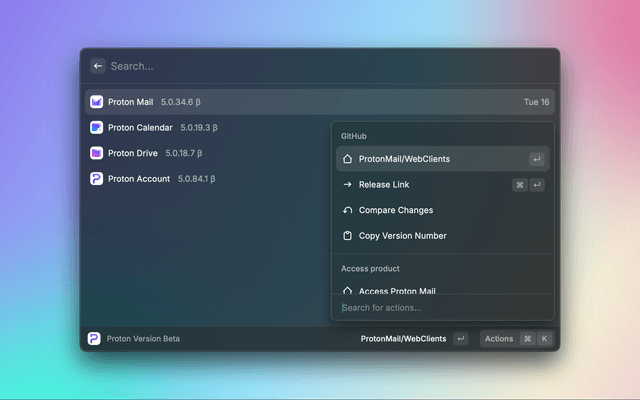 Get the latest default and beta version number of Proton products