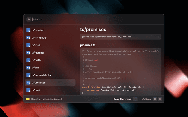 Raycast extension to interact with jsrepo registries.