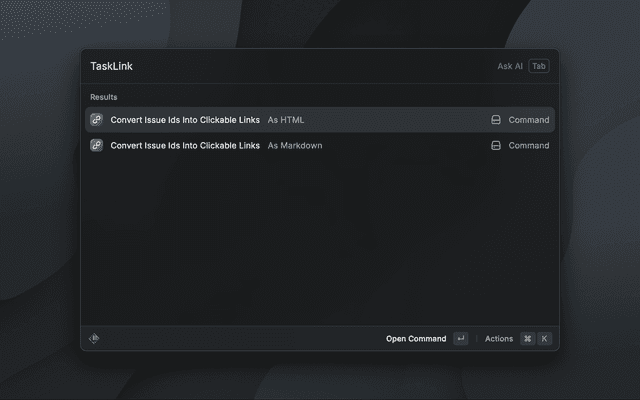 Simple extension to convert issue tracker Ids into clickable links using HTML or Markdown.