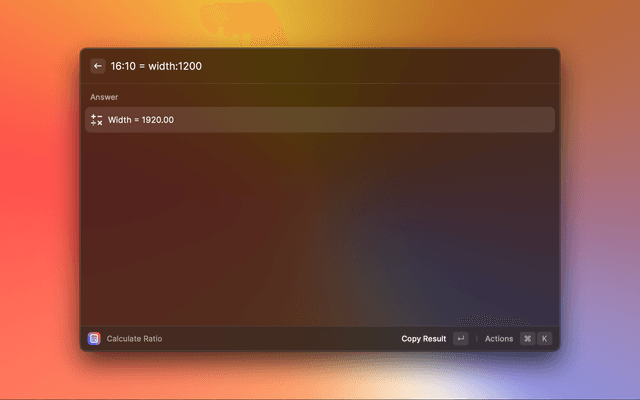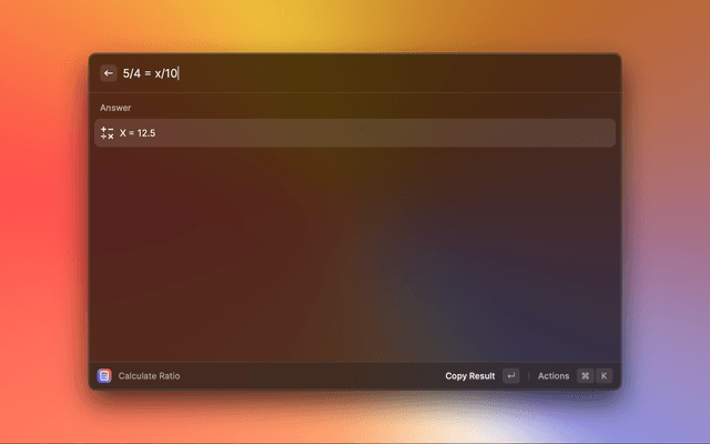 = to seperate ratios, whitespace will be ignored (meaning you can write 1 / 2 = x / 2 6 without any problems!)1/2 2/4 will work, 1/2 2 /4 will not)16/9 = width/1234= and then the extension will output whether they are equal!