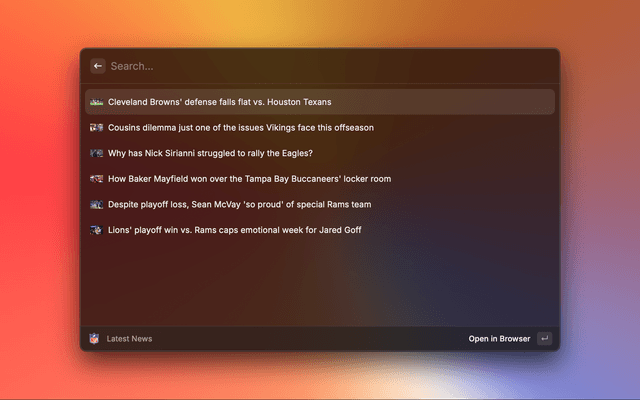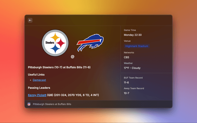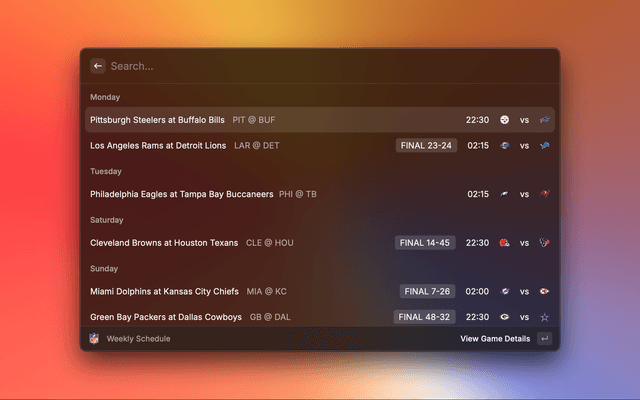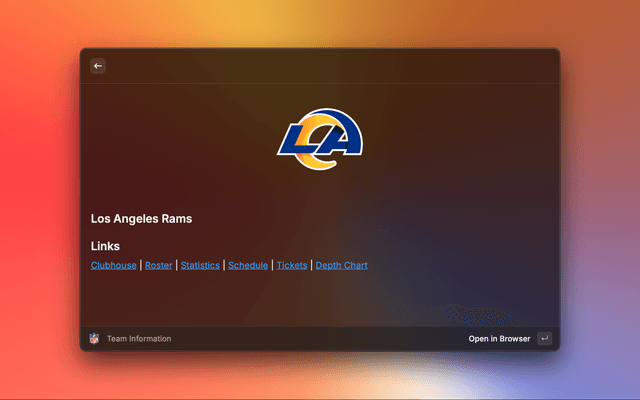 Fetches the NFL Weekly Schedule, Team information and weekly news. Get all the latest information about your favorite NFL team.