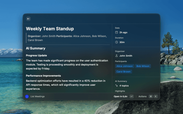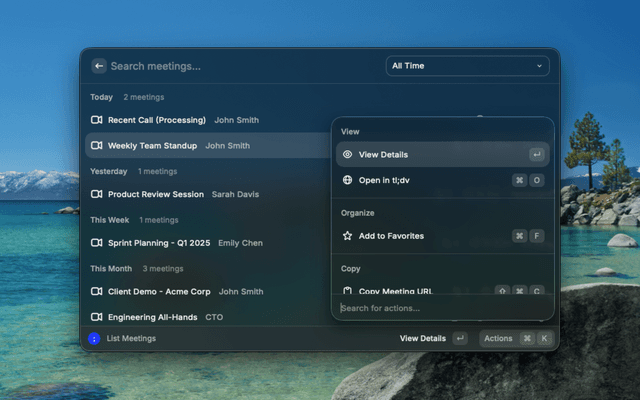 Browse and manage your tl;dv meeting recordings directly from Raycast.