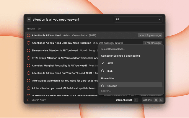 - Open Raycast and search for "Search ArXiv"