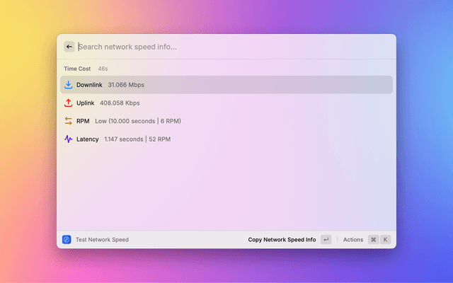 This extension uses the Mac's built-in networkQuality tool to measure network speed without installing third-party applications or command-line tools.