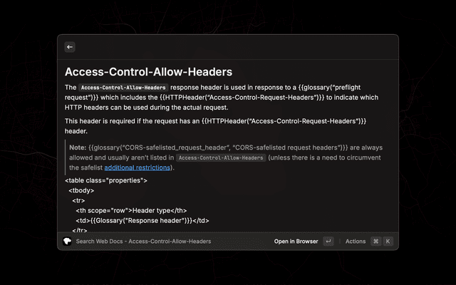 Search MDN Web Docs in Raycast.