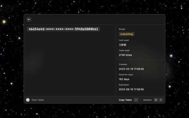 Please go to https://v2ex.com/settings/tokens to obtain token before using it.
