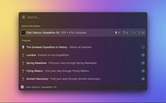 🔍 Search Functionality: Quickly find specific games or trophies