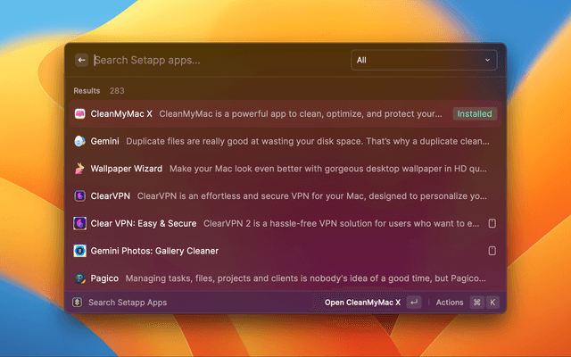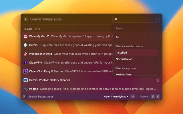 If you don't have Setapp installed it will only search Setapp online catalog of apps. If you have Setapp installed it will allow you to launch apps.