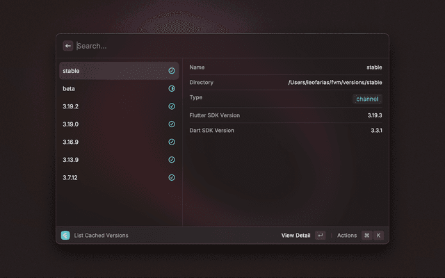 This extension uses the FVM CLI to manage installed Flutter SDKs. The extension uses its own FVM binary to avoid compatibility issues with the host system.