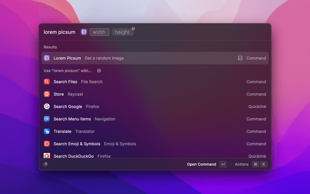 Generate a random image link for given dimensions.