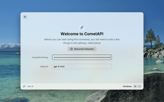 - Configure in Raycast Preferences β Extensions β CometAPI