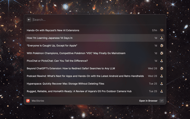 Articles are fetched using the JSON RSS feed available at https://www.macstories.net/feed/json.