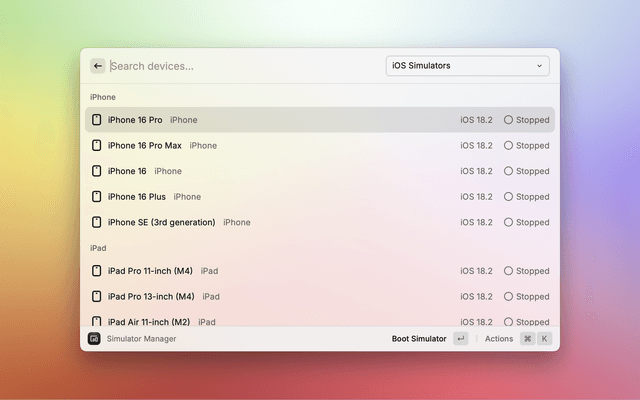 Easily manage iOS simulators and Android emulators directly from Raycast.