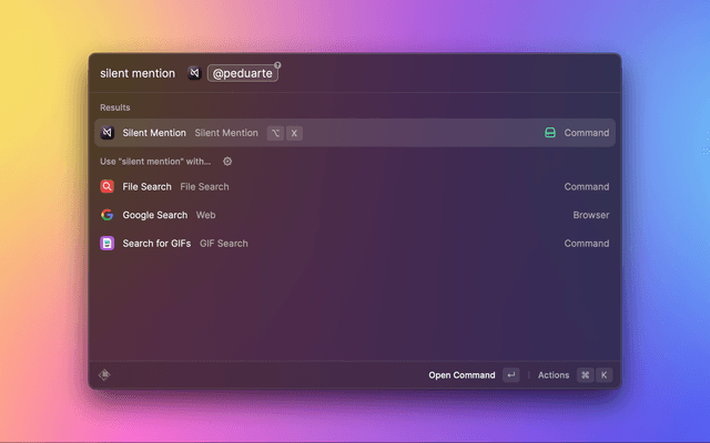 Silently mention a handle, a URL or a hashtag.