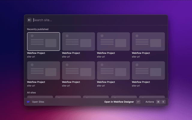 This extension gives you shortcuts over common Webflow project tasks to help save you time! Bring Webflow to every corner of your OS.