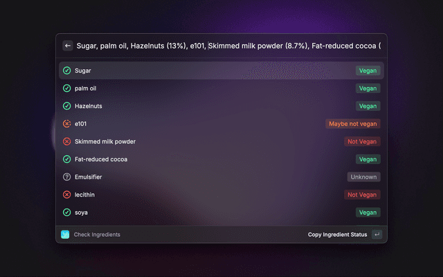 Instantly verify the vegan status of food ingredients using the Veganify API. Perfect for quick checks while cooking or shopping for groceries online.