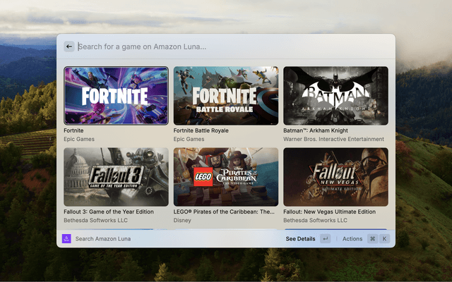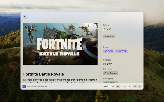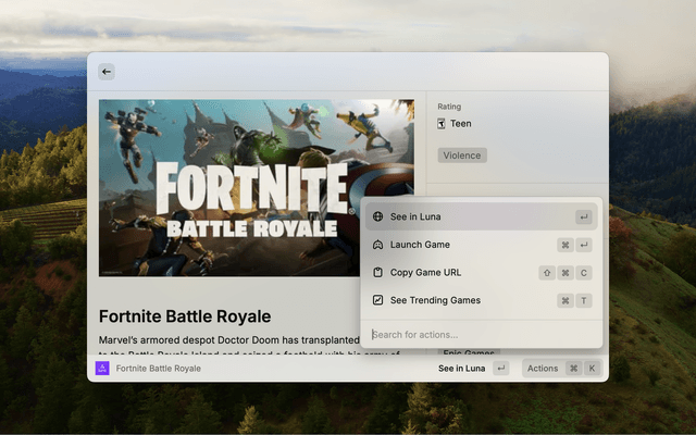 See trending games at a glance in your menu bar with the Luna Quick Access command - and jump back to games you recently accessed through this extension!