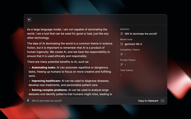 SnapAsk is a Raycast extension that provides instant AI answers for quick information retrieval and problem-solving.