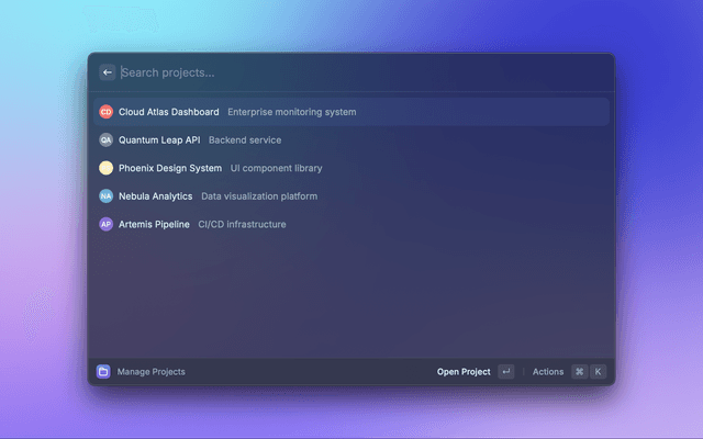 Cmd + N)Cmd + N)Cmd + N: Create new project/linkCmd + E: Edit project/linkCmd + C: Copy link URLCmd + Shift + O: Open all linksCmd + Shift + Backspace: Delete itemIf you encounter any issues or have suggestions, please file them in the Raycast Extensions Repository.