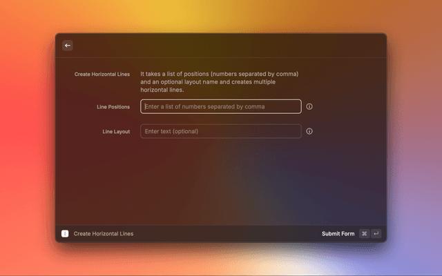 It takes a list of positions (number) and an optional layout name and creates a multiple horizontal lines.