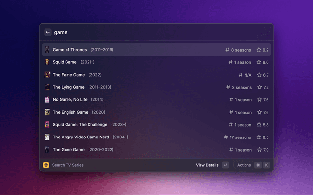 A Raycast extension that lets you easily open your favorite film or tv series on IMDb.