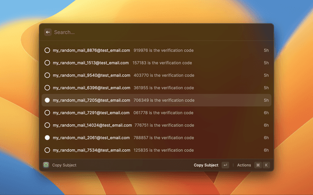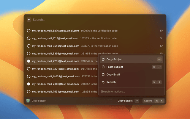 This extension currently only supports copying text from the subject line of emails in your mailtrap inboxes with plans to expand the available commands over time.